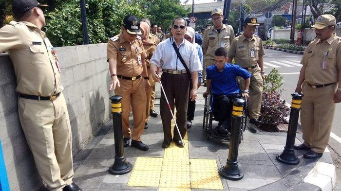 Uji coba pedestarian ramah disabilitas ini dilakukan di sepanjang Jalan KH Wahid Hasyim hingga Kebon Kacang, Tanah Abang, Jakarta Pusat, Senin (4/2/2019).